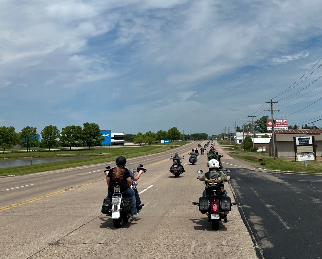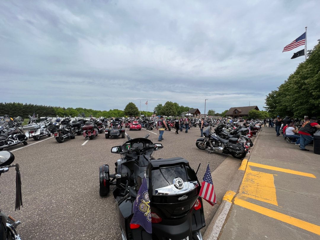 Multiple groups of riders from all over the state converged at the Neillsville American Legion Post 173 to support The Highground’s efforts to enrich their veterans’ programs for veterans and their families. After that, riders joined together for a loop around Neillsville before heading out to The Highground for the Memorial Day ceremony. The Highground raised just over $14,300 with help from the route leaders, riders, volunteers and sponsors. All funds raised by the Honor Ride help improve PTS/PTSD programs, Veterans Retreats and more for Veterans and their families at no cost. These offerings along with the tranquility of The Highground are part of the organization’s continuing mission to help heal the wounds of war.