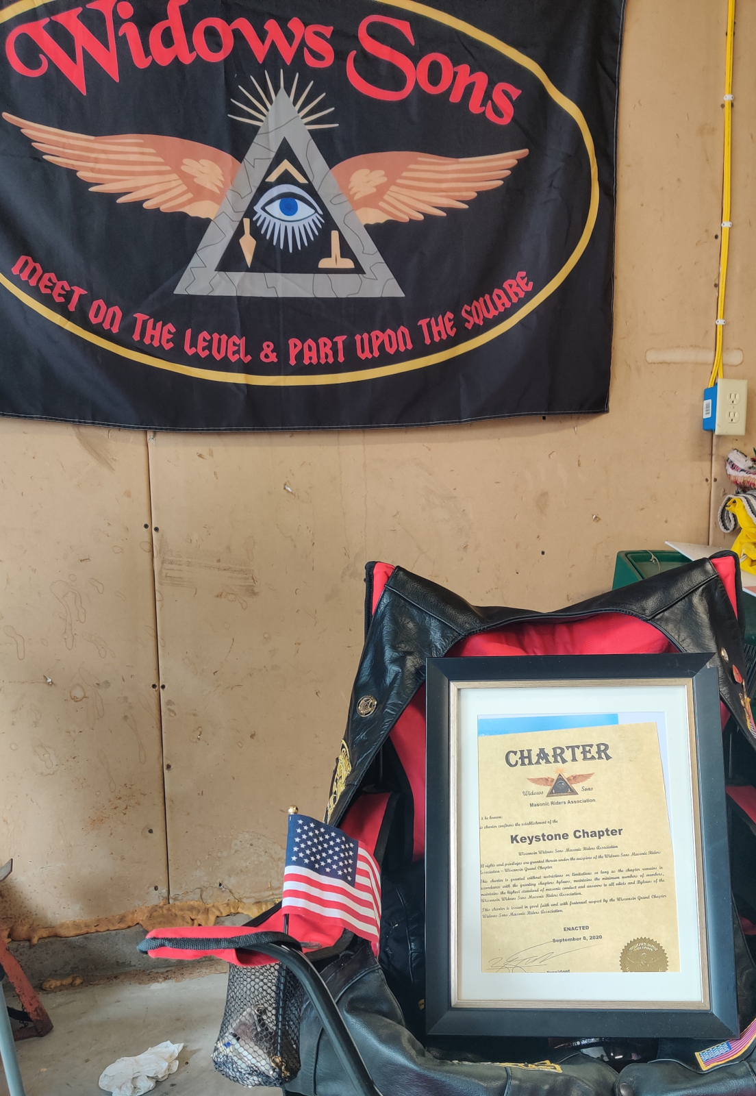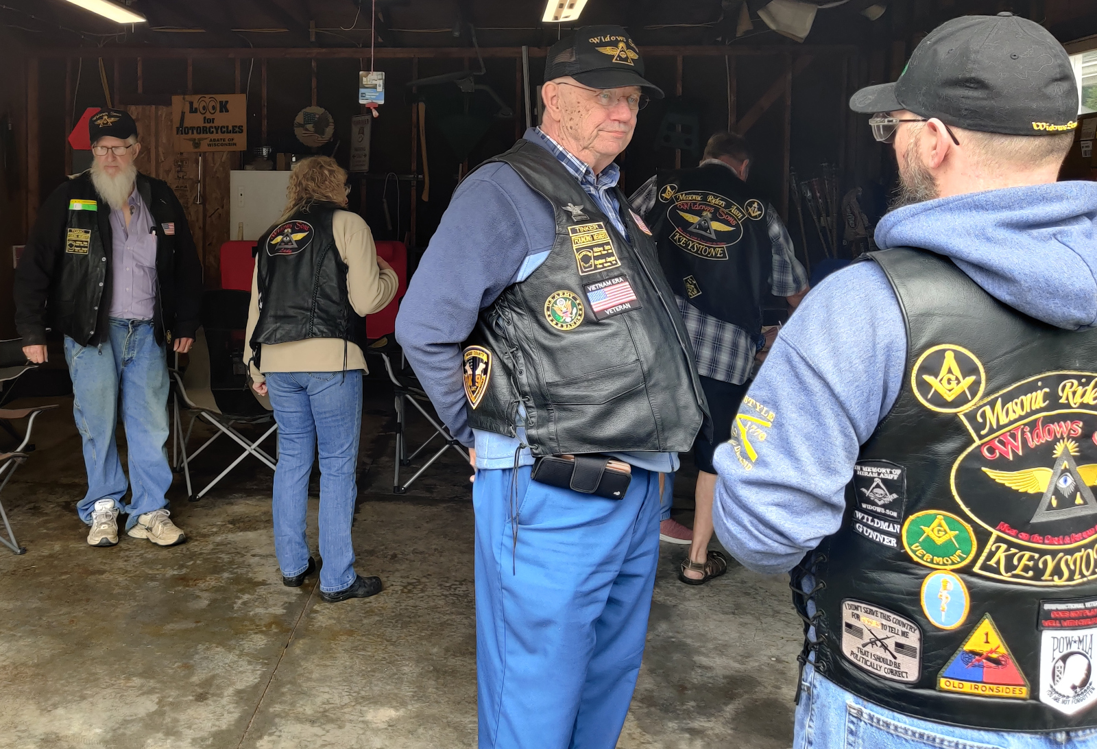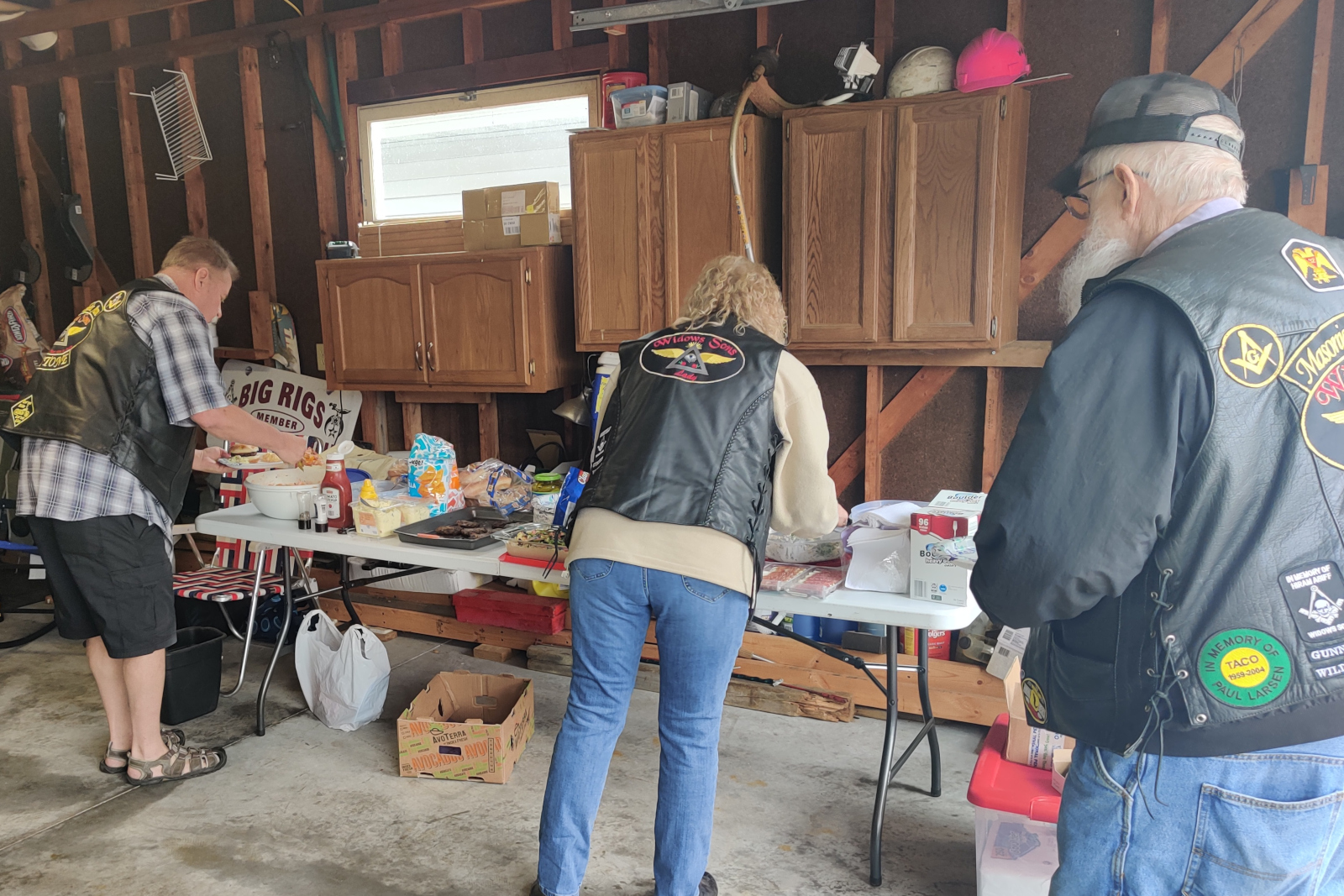 So starts the 3rd anniversary meeting of the Widows Sons Keystone Chapter. President and Founder Toxic spoke about the origins of the chapter and future plans. From four people in a kitchen, to over 20 members all over Wisconsin in 3 years. The Chapter has grown swiftly and the motorcycles we ride are just as swift. We discussed a few business items including group rides, increasing member participation and upcoming chapter rides. At the end of the meeting, Bro. Archimedes gave a heartfelt and passionate speech of what the Widows Sons and Keystone Chapter mean to him. Thank you Bro Archimedes. All said and done, it was time for the Grub! Hamburgers were the staple along with many amazing side dishes brought by the members. Everyone was able to share the food and friendship of this group. Here’s to many more years and rides!