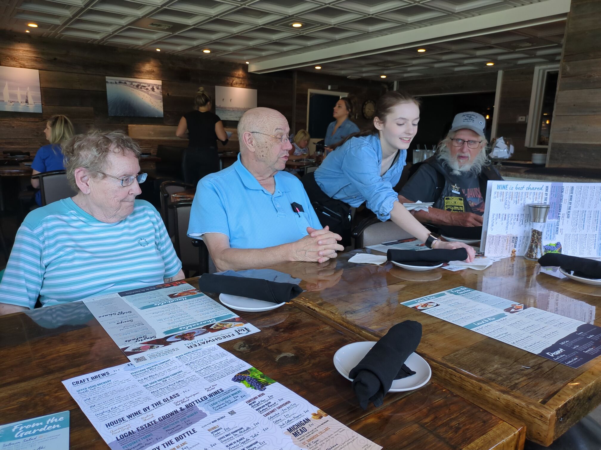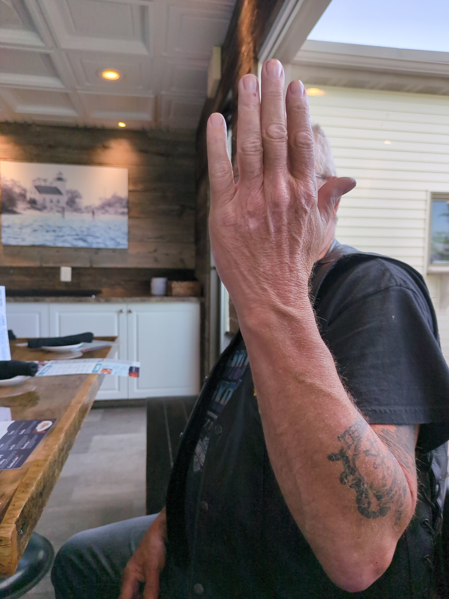 Part of the view at dinnerChuppa, Tinker, talented waitress, ToxicBig O says ’talk to the hand’