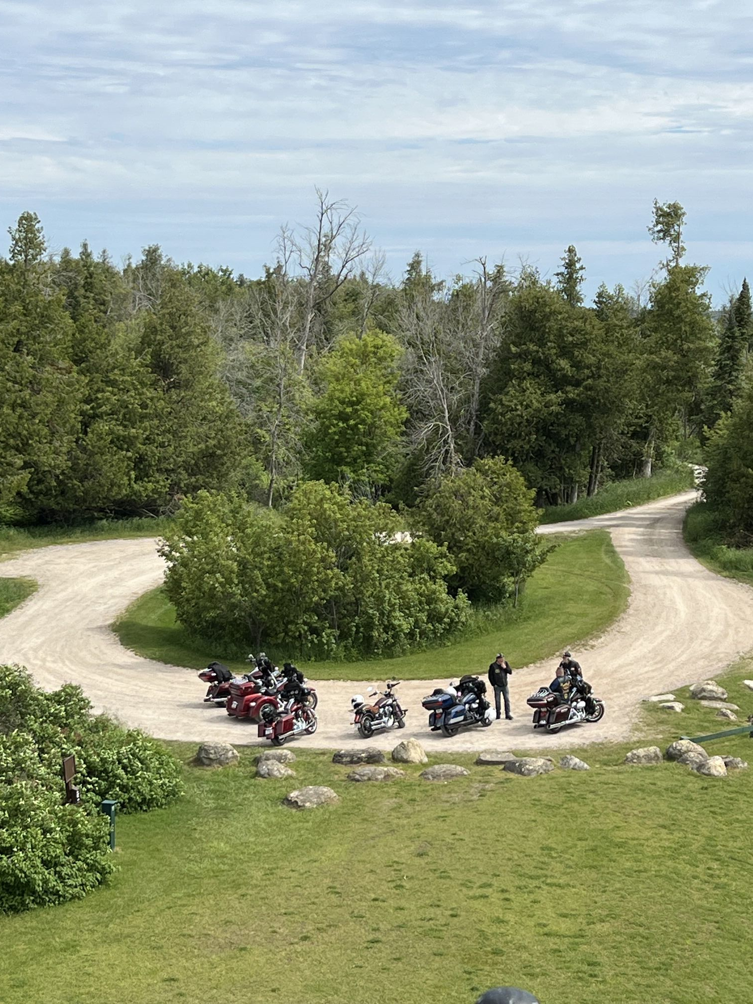 Almost recreated the group photo from last year at the Peninsula Point Light station; (Tank, Archimedes, Sherlock, Dino, Toxic, Big O)Looking down from the light stationThe Wardens rideWarden, Archimedes and Sherlock atop the Light station